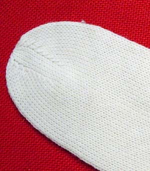 Sollten die Strümpfe zu weit sein, nach dem Bündchen auf jedem Bett eine Masche abnehmen, dann bleibt der Einstieg bequem. |
